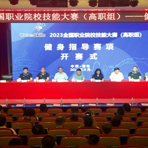 8月13日,2023年全国职业院校技能大赛高职组“健身指导”赛项在青岛职业技术学院隆重开赛。教育部职成司高等继续教育处处长董振华,赛项执委会副主任、北京体育职业学院党委书记安江红,青岛市委教育工委副书记、市教育局副局长姜林,赛项执委会副主任、青岛职业技术学院党委书记王金生,赛项专家组组长、哈尔滨体育学院教授房英杰,赛项裁判长、天津理工大学教授张志武,赛项监督仲裁组组长、山东科技职业学院教授谭清国,山东省教育厅职业教育与成人教育处副处长宋健,赛项合作企业青岛英派斯健身有限公司总经理丁一铭出席开赛式。来自全国各高职院校参赛队的领队、指导教师、参赛选手参加开赛式。开赛式由赛项执委会委员、青岛职业技术学院副院长乔璐主持。