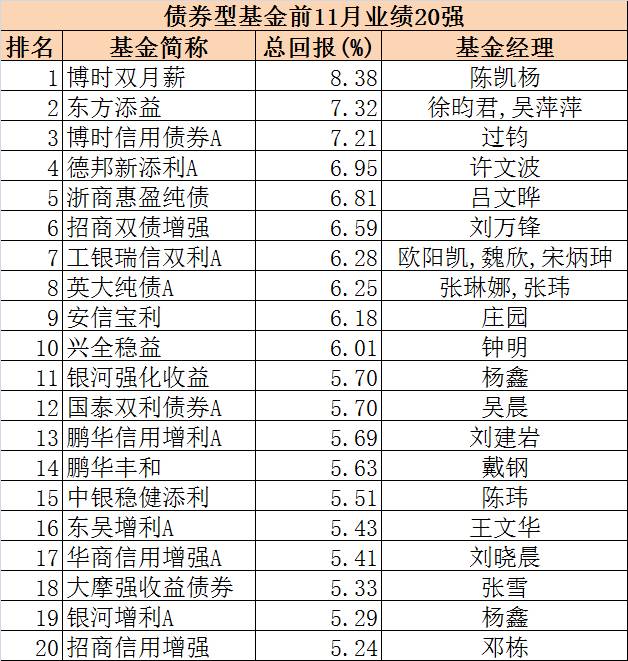 债基前11月业绩20强:
