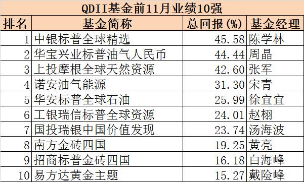 QDII基金前11月业绩10强: