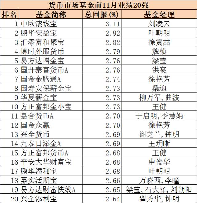 货基前11月业绩20强: