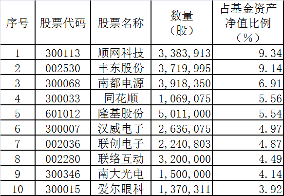 表2:易方达新兴成长前十大持股明细(数据来源:基金三季报)