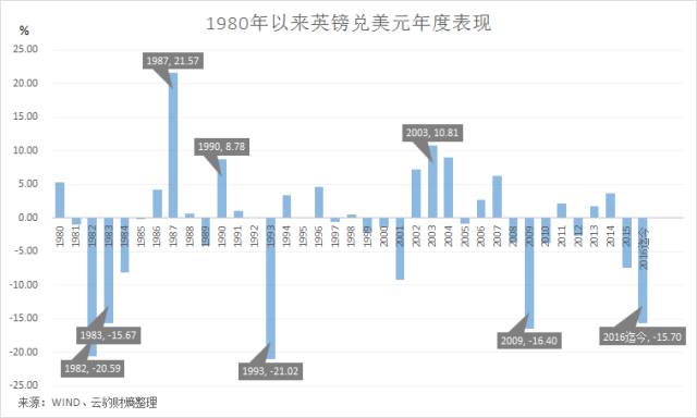 不过,真正可与1967、1976或1992年相提并论的英镑危机,自1992年以来唯有今年的“脱欧”。英镑不仅在退欧公投结果出来当天暴跌8%,更在10月初新首相特里莎·梅有关于“硬脱欧”的表态后发生了前述的闪崩。