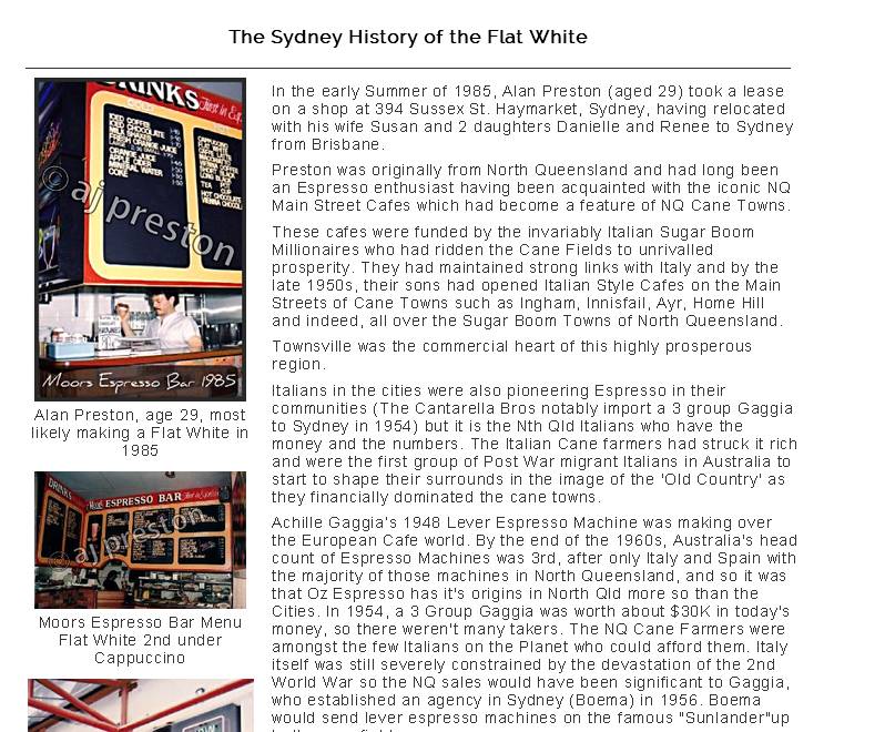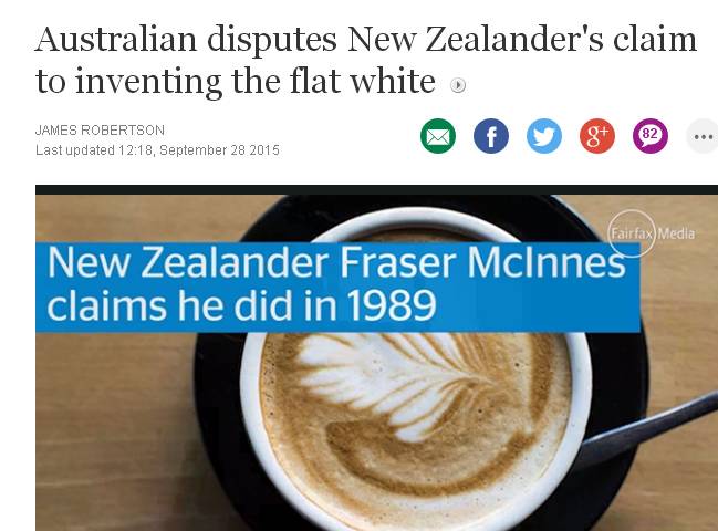 来自新西兰惠灵顿的咖啡师Fraser McInnes表示小白咖啡是自己在1989年一次偶然当中发明的,但是澳大利亚人Preston对McInnes的说法并不认同,“呵呵,无中生有是典型的新西兰人的做法”;两国人民在互联网上展开了一场没有硝烟只有口水的嘴仗,互改维基百科,维护自己国家的“荣誉”。