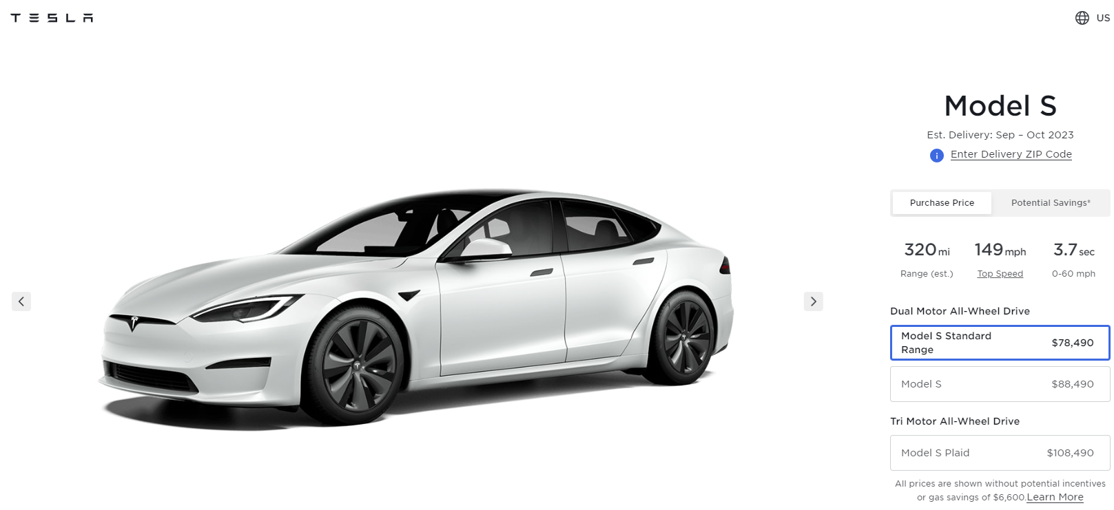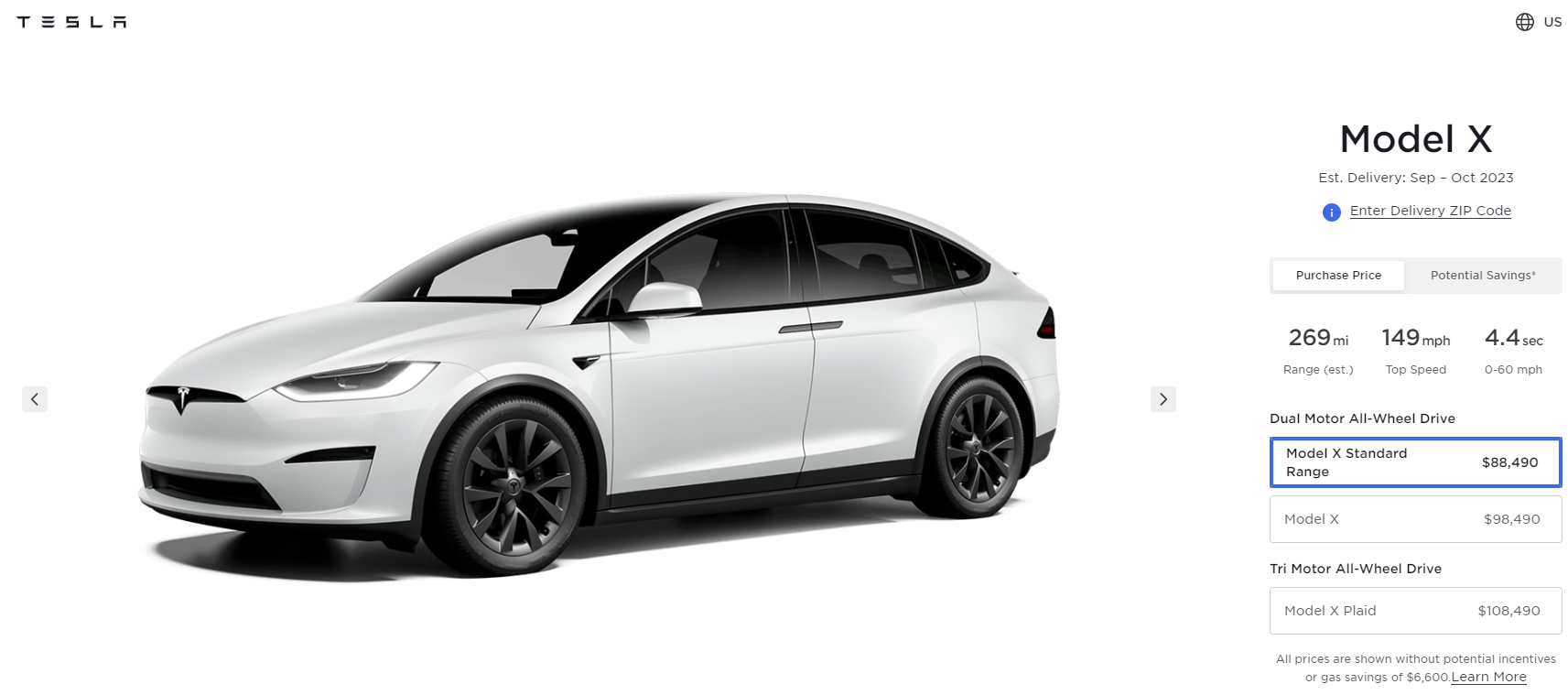 据特斯拉美国官网显示,特斯拉在美国推出了新款Model X标准续航版和新款Model S标准续航版,现已可订购,售价分别为88490美元、78490美元。