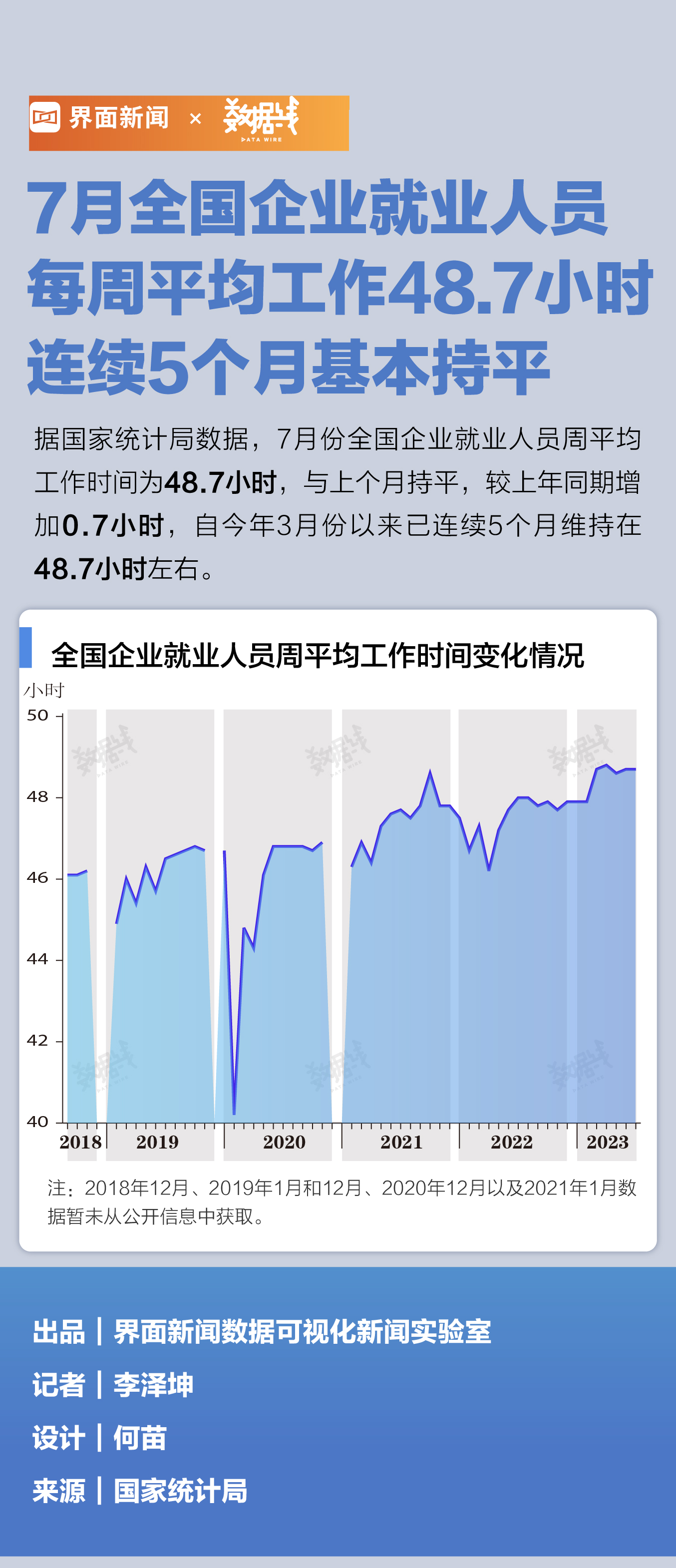 数据 | 7月全国企业就业人员每周平均工作48.7小时,连续5个月基本持平