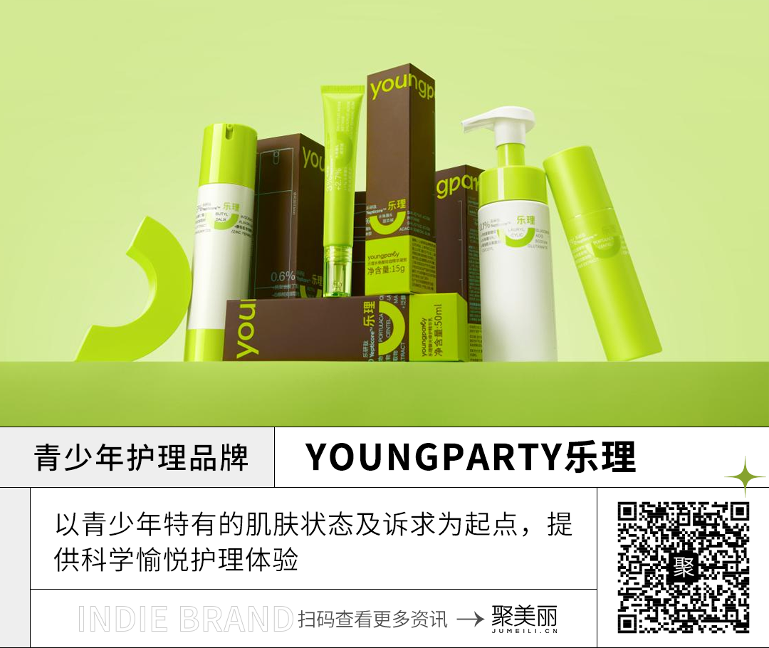 彩妆品牌INTO YOU的母公司丽知集团,在今年6月正式推出了一个全新的护肤品牌YOUNGPARTY乐理,是面向青少年的专业个性化护理品牌。品牌名乐理意味着快乐而理性,品牌希望打造一个属于青少年的专属空间YOUNGPARTY。
