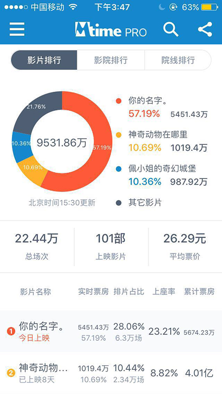 根据时光网专业版数据,影片在内地上映首日排片占比达到57%,截至目前的票房达到5000万元以上,远超第二名的《神奇动物在哪里》。到达中国后的新海诚,对中国影迷的热情感到很吃惊,“没想到中国观众这么了解我和我的作品”。