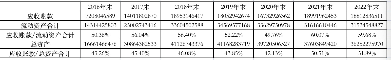 2023年第一季度报告显示,海王生物的应收账款高达197.13亿元,较2022年末增长4.79%。应收账款占流动资产比例为61.50%;应收账款占总资产的比例为53.67%。