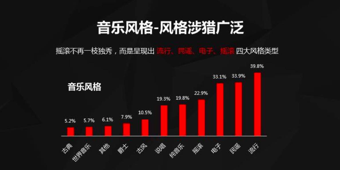 尽管从体量上看,独立音乐相对主流商业音乐仍属小众,但是,伴随着移动互联网的发展,听众注意力分散,音乐口味更加偏向分众化与个性化。以民谣、电音乃至二次元为例,过去它们被贴上小众、非主流标签,如今由于听众愈发追求个性化,每一个方向下的体量也愈发庞大。这也是独立音乐逐渐成长的重要原因。