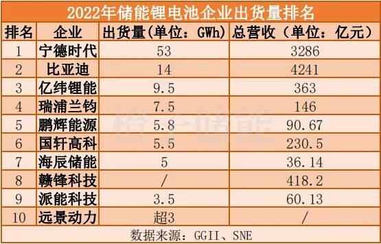 2022年,中国储能电池企业出货表现: