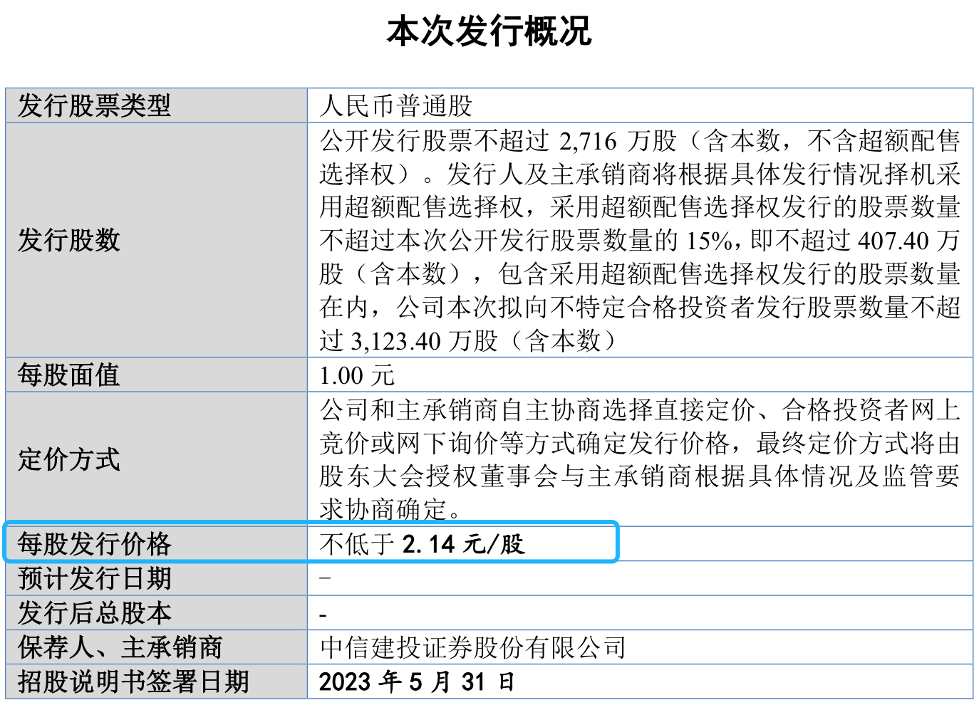 3个发行底价