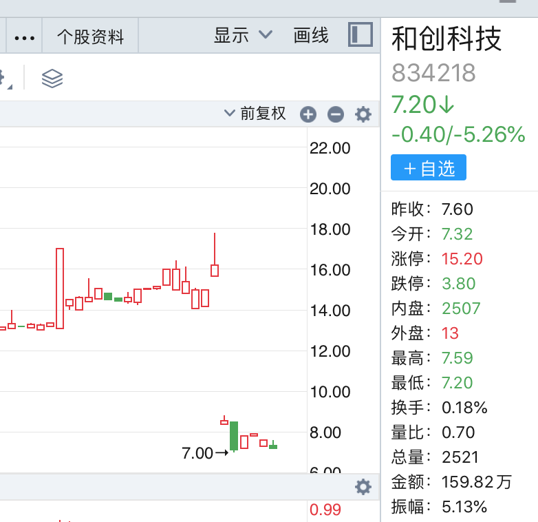 而从盘面来看,在终止计划后,2023年8月11日恢复交易的和创科技接近腰斩,截至8月18日收盘,其价格为7.2元,早已不是去年停牌前的样子。