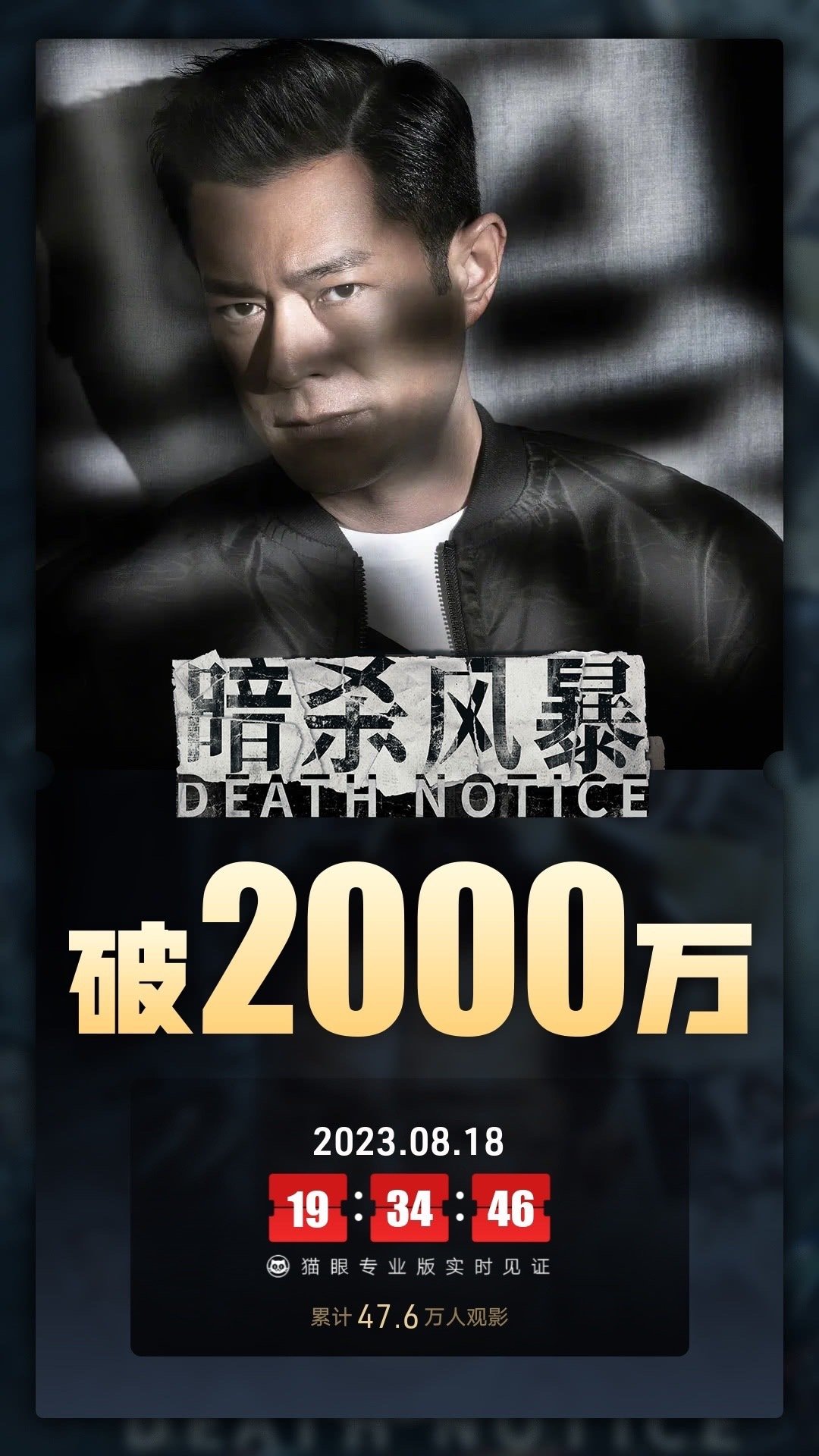 8月18日,据猫眼专业版数据,电影《暗杀风暴》上映首日,总票房破2000万。