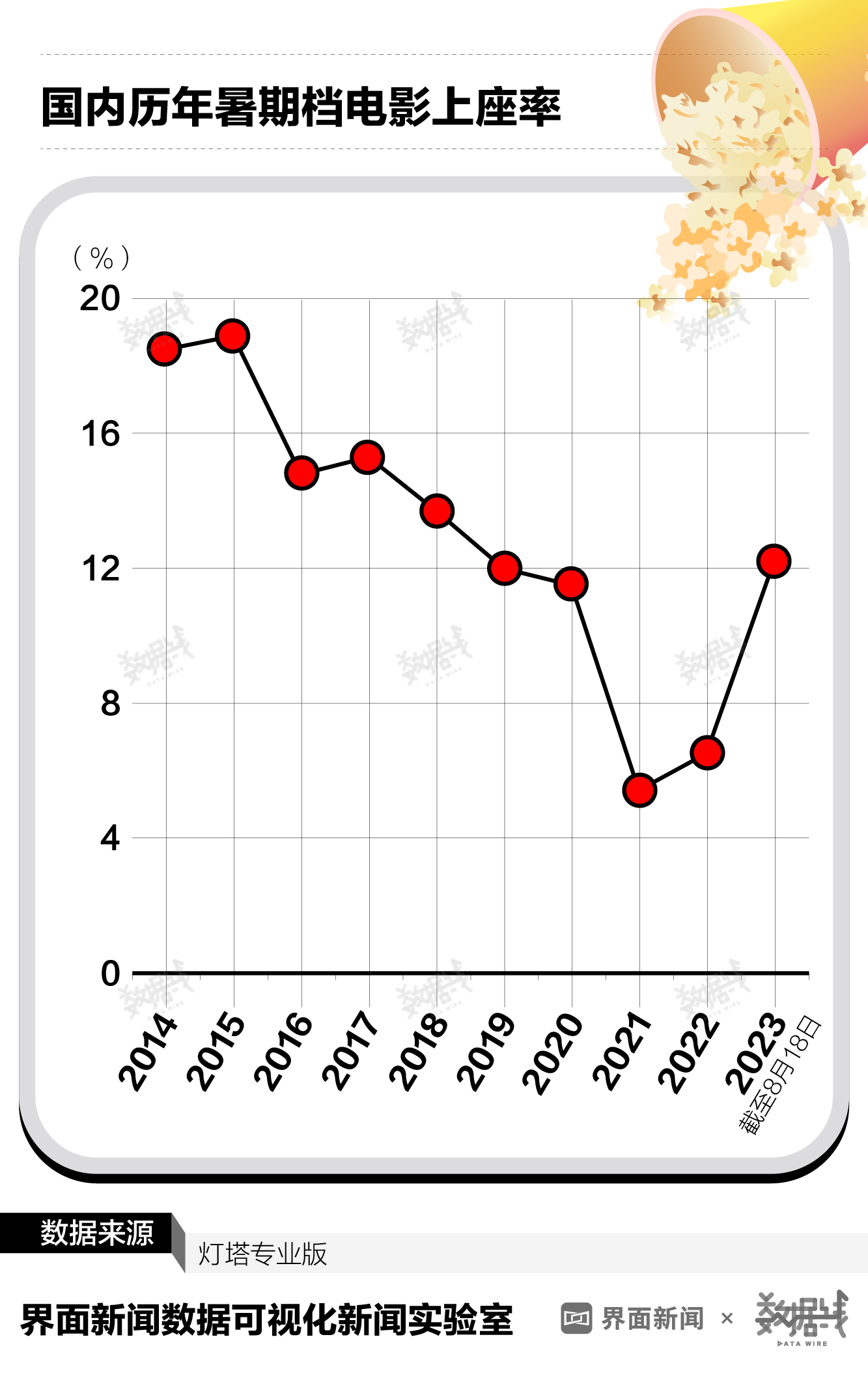 平均每场电影的入场观众也更多了。截至8月18日,今年暑期档电影的上座率(上座人数/总座位数)达到12.2%,已超过2019年暑期档整体水平,而过去两年仅有6%左右。