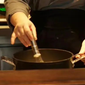 把后厨搬到前厅,公开熬煮区,现场制作,突出手作工艺;