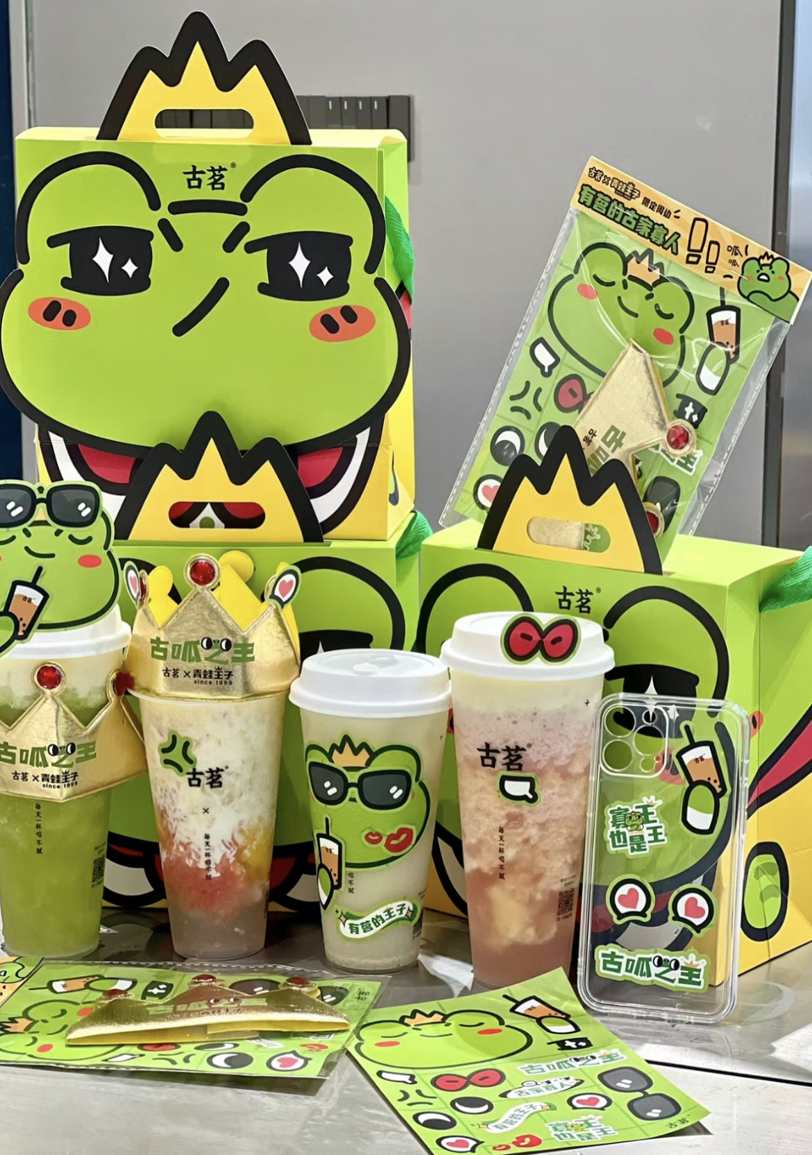 还有被网友称为最“显眼包”的古茗,联名童年记忆“青蛙王子”IP,两杯“有茗王子套餐”送青蛙王子打包袋,一杯“有茗的孤家寡人”即可收获寡王王冠杯套与DIY贴纸,主打一个为单身人士着想。