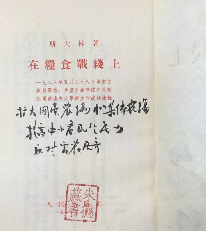 今年12月1日四川仪陇的朱德同志故居纪念馆复馆,为了这次复馆,我捐了100多本爷爷以前看过的书,差不多把我收藏的都捐出去了。经过这次整理,我才发现他看的书很多、面很广,不仅有列宁的书、论述社会主义发展道路的书,也有经济学的书,各方面的都有。这些书不是翻一翻,而是认认真真读过,批注非常多。
