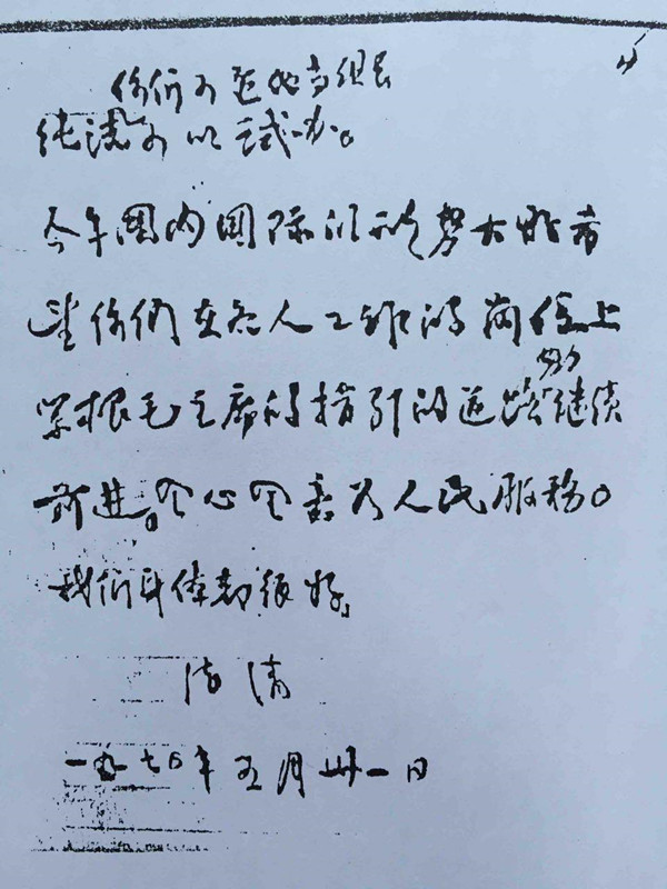 朱新华:我们赶回来的时候,他还没有昏迷,还能说话,但说话很费力,只能说很少的话。看到我们还挺高兴,说:“你们要做无产阶级。”后来李先念来看他,他说:“中国还是要搞工业化、走现代化的道路。”