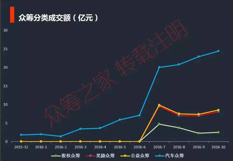 (注:股权众筹、奖励众筹、公益众筹所选取的数据是从今年7月开始。)