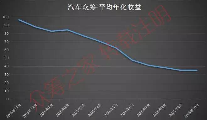 以下是一份关于汽车众筹行业的平均年化收益,整体呈现下降趋势。