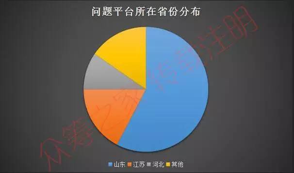 可见,山东地区出现的问题平台数量占了总数量的一半以上,其次分别是江苏和河北。