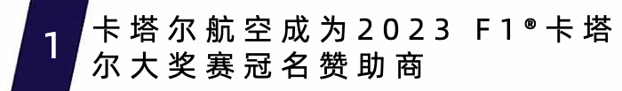 近日,卡塔尔航空宣布成为2023 F1®卡塔尔大奖赛的冠名赞助商,该赛事将于10月6日至8日在卢塞尔国际赛道举行。为此,卡塔尔航空在波音777机型上推出全新定制F1®飞机彩绘涂装,并推出独家终极F1® 粉丝体验套餐,自9月20日至10月10日,旅客可在特定航班上尽享F1®联名特色佳肴,包含F1®主题甜点。此外,该套餐还将为车迷朋友们提供日内瓦车展免费门票。