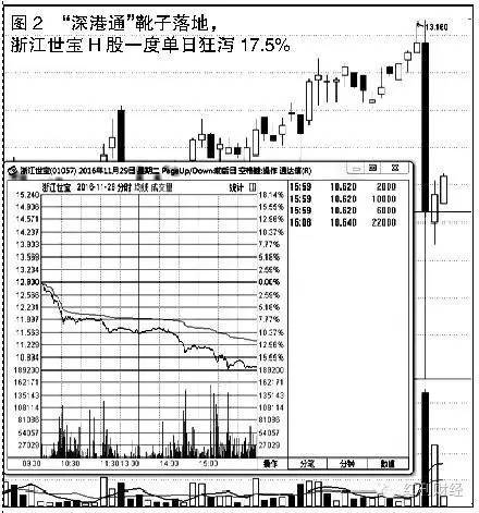 从浙江世宝H股炒作的轨迹来看,第二波的力度已经远不如第一波,而且第二波最高点距离第一波有20%的差距,显示香港市场投资者对“深港通”带来AH股估值拉平并不看好,炒作资金明显撤退。11月29日浙江世宝H股单日狂泻17.5%(图2),更验证了投机资金不计成本出逃。