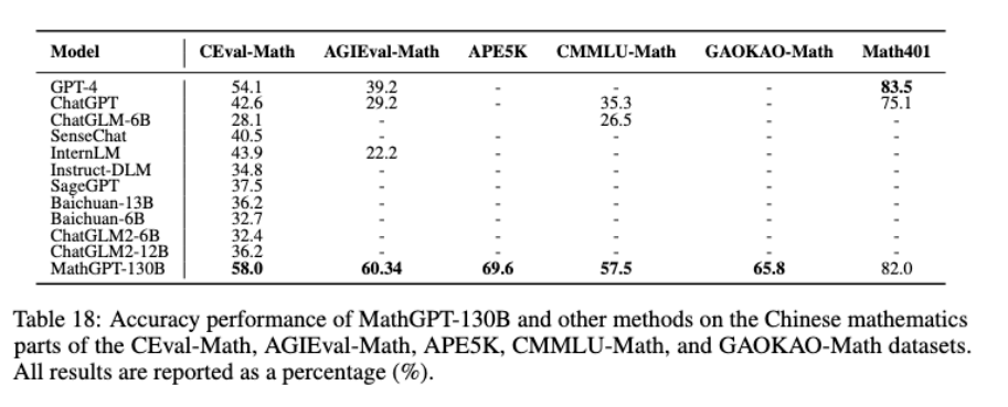 其中,以微软华人研究团队发布的基准测试AGIEval为例,Open AI推出的GPT-4、好未来的MathGPT的正确率分别为39.2%、60.34%;但在Math401评测中,GPT-4略胜一筹,正确率高出MathGPT1.5个百分点。