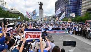 周三晚,共同民主党组织了千人烛光集会,在国会大厅外抗议日本核污水排海。周五到周六,该党还将组织新一轮街头抗议游行。