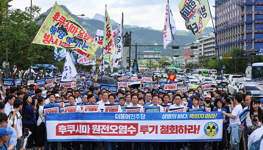 韩国在野党更是猛烈抨击日本的排海行为和韩政府,甚至把日本排污入海称为第二次太平洋战争。周五,在野党组织了大规模抗议游行。