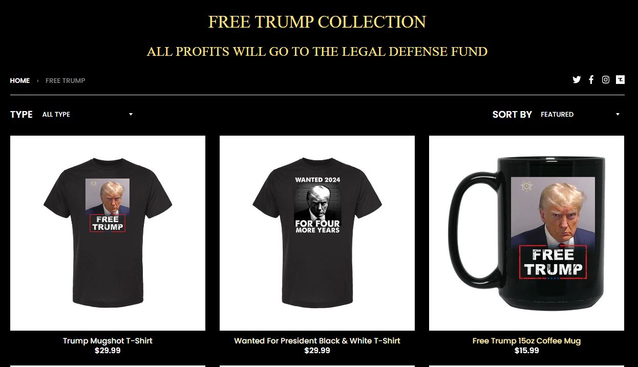 网站解释,所有产品收益将进入特朗普的法律诉讼辩护基金。
