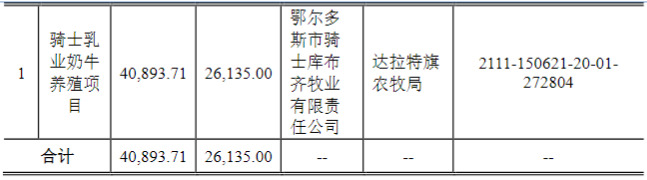 骑士乳业相关报告称,预计募投项目建成后,实现规模化的奶牛养殖牧场,可以有效保障公司未来长期稳定的优质奶源供应,一方面公司成为蒙牛乳业的战略合作伙伴,牧场主要向蒙牛乳业供应有机生鲜乳;另一方面,牧场原奶供应给自由奶制品加工厂,进一步增加产品附加值,扩大市场规模,从而进一步提升公司核心竞争力。