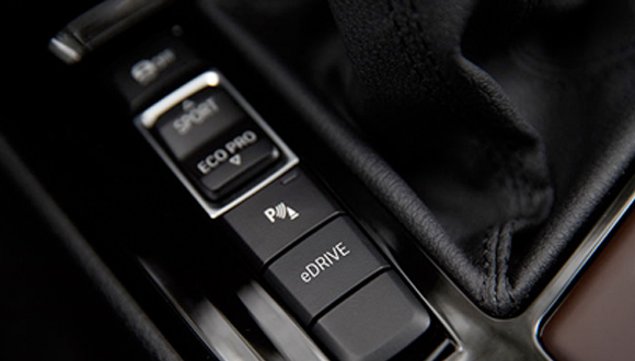 第一种是Auto eDrive模式,这一模式类似于“傻瓜相机”,由系统智能判断是使用单一动力来源或还是组合。在默认的设置中,时速不超过80公里的情况下,车辆会优先采用电能驱动,而当任何时候深踩油门踏板或者时速超过80公里,系统会立刻启动汽油发动机,由两套动力系统同时提供动力。