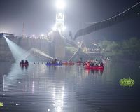 【图集】印度吊桥坍塌已致141人遇难,事发时数百人跳入河中