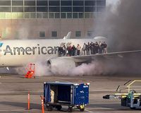 美国航空一架波音客机在丹佛国际机场迫降后起火,所有乘客被紧急疏散