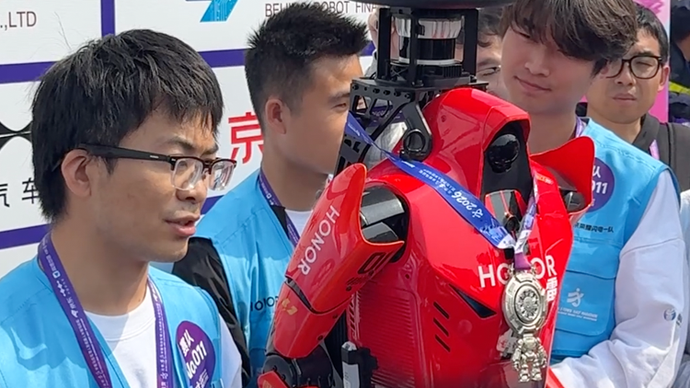 00:21人形机器人半程马拉松完赛,荣耀机器人夺冠赛后采访...APP内打开 -