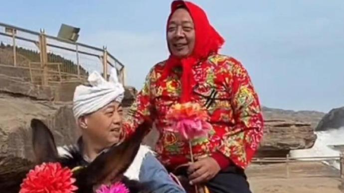 00:13于东来在壶口瀑布系红头巾穿花棉袄骑毛驴APP内打开 -