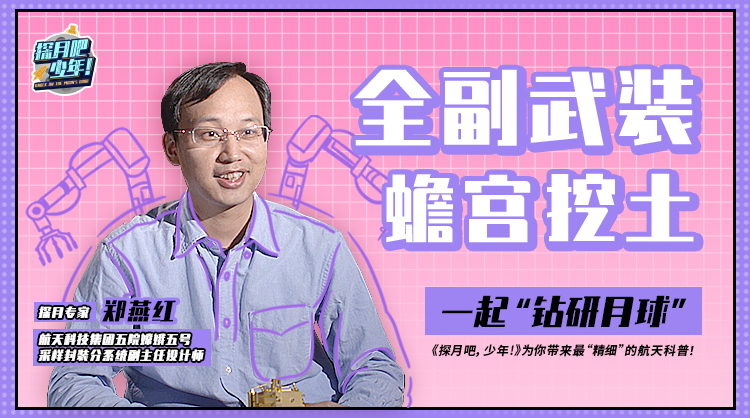 嫦娥五号成功奔月,延续了我们千百年来的飞天梦想,可是对嫦娥五号来说,更重要的意义,是将珍贵的月壤带回地球。不过在月球上“挖土”,可不是一件容易的事情。在本集《探月吧,少年!》中,航天科技集团五院嫦娥五号采样封装分系统副主任设计师郑燕红,将带领大家揭秘嫦娥五号的超强“挖土术”。