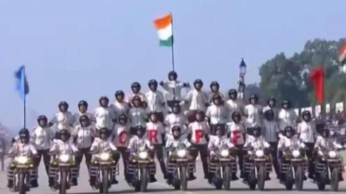 00:18印度阅兵式动物方队亮相,42名女兵摩托车上叠罗汉APP内打开 -