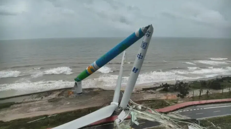 受台风“摩羯”影响,位于海南文昌木兰湾沿海的华能文昌风电厂多台风机被折断。