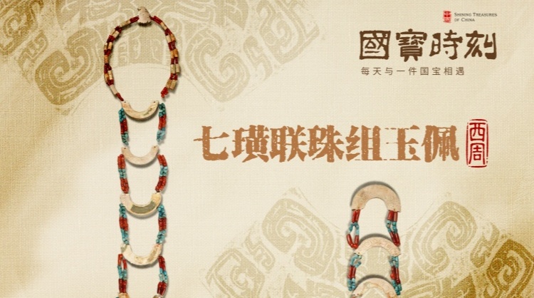 126厘米的长度,7枚递增的玉璜,数百颗玛瑙与釉砂珠的精密连缀,以严密的秩序,串联成一场视觉的礼乐。这是一组会“说话”的组玉佩,匆促时,组件缠绕,声响凌乱;从容间,佩环轻摆,清越和鸣。它以声音,规范着仪态,约束着德行。珠璜相衔的刚柔并济,携西周风雅而来,将一场跨越三千年的“礼乐相和”凝为永恒。《国宝时刻》邀您共鉴,每天与一件国宝相遇,《国宝时刻》为您揭秘!