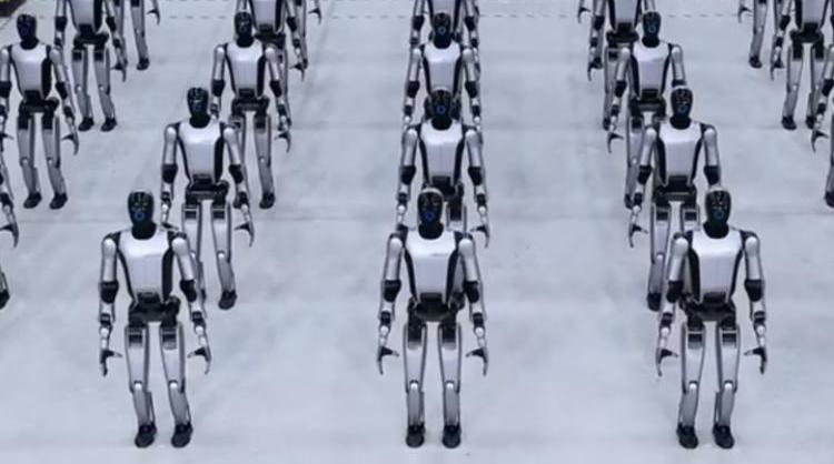 数百台人形机器人交付拍出“军团集结”大片,展示自主换电,可7x24连续工作