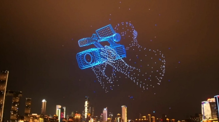 无人机群打造震撼光影对话,中阿广电合作在山城夜空开启新篇!