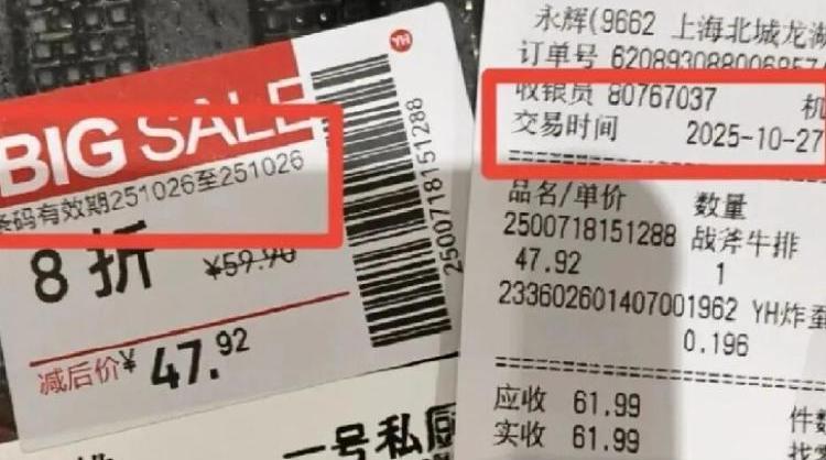 10月30日,据经视直播,涉事永辉超市客服主管回应称,打折码其实是在10月27日,即消费者购买商品当天打印的。问题可能源于打折机操作失误,店员误将日期打印成10月26日,后续门店将进行整改,加强打折码使用规范。